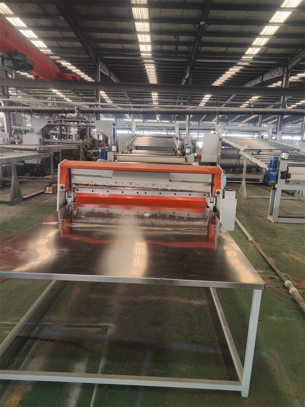 (十)冷卻牽引切邊裝置1) 牽引電機(jī)功率:1.5kw,壓輥為橡膠輥,主動輥為橡膠輥,牽引輥直徑:φ150mm牽引被動輥有效提升距離為:50mm 3) 托架總長6米.,分兩段,方管結(jié)構(gòu)。過渡冷卻輥材質(zhì):φ63不銹鋼,輥面寬度2500mm 4) 兩側(cè)兩把切刀可有效切除廢料,使片材達(dá)到所需要的寬度,安裝刀片的刀桿上帶鍵槽;方便統(tǒng)一調(diào)整刀的角度 5) 調(diào)節(jié)切邊刀;托架平臺一件;平臺寬400mm.平臺表面帶帶防滑;人蹬在上門方便調(diào)節(jié)刀片;帶上下樓梯;帶扶手(扶手的顏色為安全色:黃色)