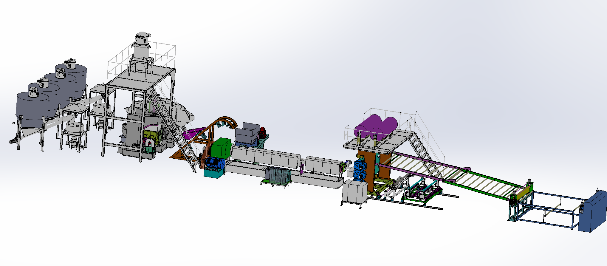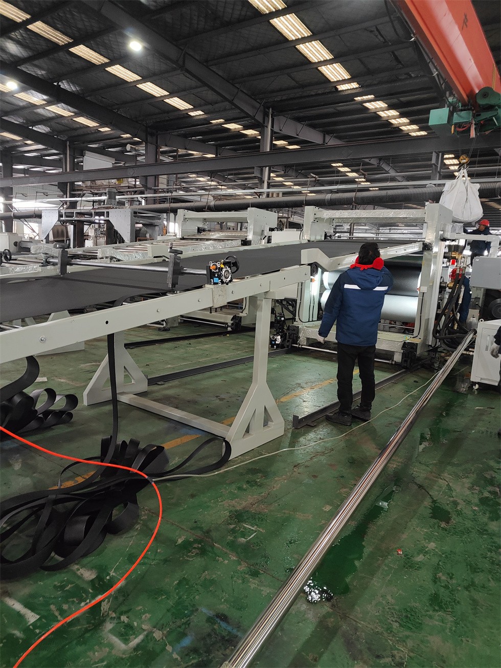Ⅲ、加工物料:POE隔音片材,EVA隔音內(nèi)飾片材 要 求:制品寬度:2000mm 制品厚度:1-5mm 物料比重:1.7-2.0 產(chǎn) 能:15~18噸/24小時 注意事項:取決于客戶的配方、工藝、生產(chǎn)條件