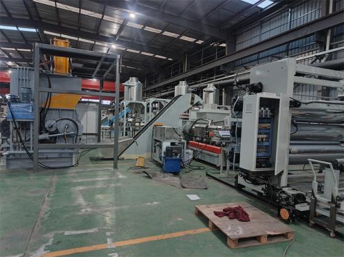 - 工藝原理:利用螺桿旋轉(zhuǎn)產(chǎn)生的壓力和剪切力,使塑料顆粒在料筒內(nèi)逐漸熔融塑化,然后通過擠出模具將熔融的塑料擠出成具有一定形狀和尺寸的片材,在擠出過程中還可通過調(diào)整工藝參數(shù)來控制片材的厚度、寬度、平整度等質(zhì)量指標(biāo)。