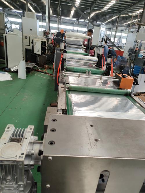上下放卷裝置(熱腹合無紡部裝置) 隔音阻尼片擠出 單工位1)上放卷安裝在輸送帶頂部;一個直徑71mm氣脹軸;放卷速度采用磁粉控制; 放卷裝置上安裝導流輥;展平輥等2)下放卷安裝與托架下; 一個直徑71mm氣脹軸; 放卷速度采用磁粉控制;下放卷架子與底座為螺絲連接;與輸送帶能同步前后移動;防止下放卷在放無紡布是不能與輥筒摩擦; 放卷裝置上安裝導流輥;展平輥等3)放卷手動糾偏系統二套(七)壓花輥筒一1)上輥直徑:150mm,長度:600mm 壓花棍,采用加大氣缸自動調整高度2)下輥直徑:150mm,長度:600mm 光棍,采用變頻器控制;隔音阻尼片擠出電機功率:2.2KW(八)JDL-600切刀系統(公司發(fā)明專利:CN201710425661.2)1) 最大剪板寬度:600mm.裁切精度要求控制:0.1mm,最大厚度:15mm,剪切速度,15m/min2) 剪板方式氣動;跟蹤裁斷,跟蹤長度100mm,切刀有光電安全保護裝置,切刀上加羊毛刷;3)要求切刀系統要自動點數;點數后輸送帶自動分離隔開(例如:每切10次;輸送帶就快一次4) 輸送帶材質:輸送帶600mm×1500mm;輸送帶里面加不銹鋼板鋪平,橡膠輸送帶兩邊要帶槽道;防止輸送帶跑偏;輸送帶兩邊要包邊片材擠出機 http://www.yuanxiang888.com/contents/39/60.html